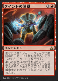 「クイントの洞察(ゴブリンの影)」は2マナのエンチャントなので、出すコストは少ないです。なので複数枚戦場に出ていれば、追放領域から土地を置くだけで8ダメージが飛んできてしまいます。